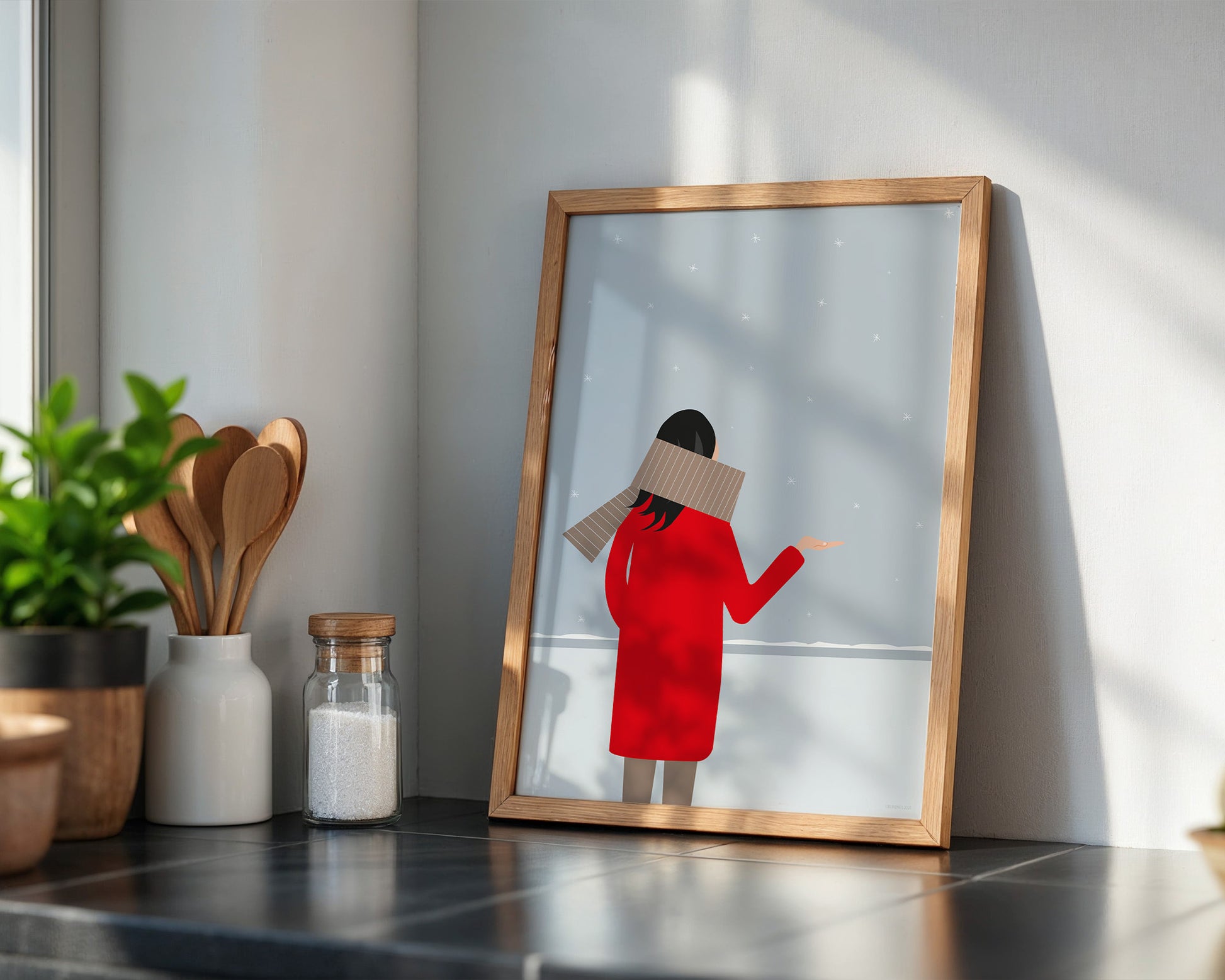 Perfect for giving your wall a cozy, wintery feel—without your toes getting cold! Pair it with other seasonal prints or let this soft illustration shine solo.