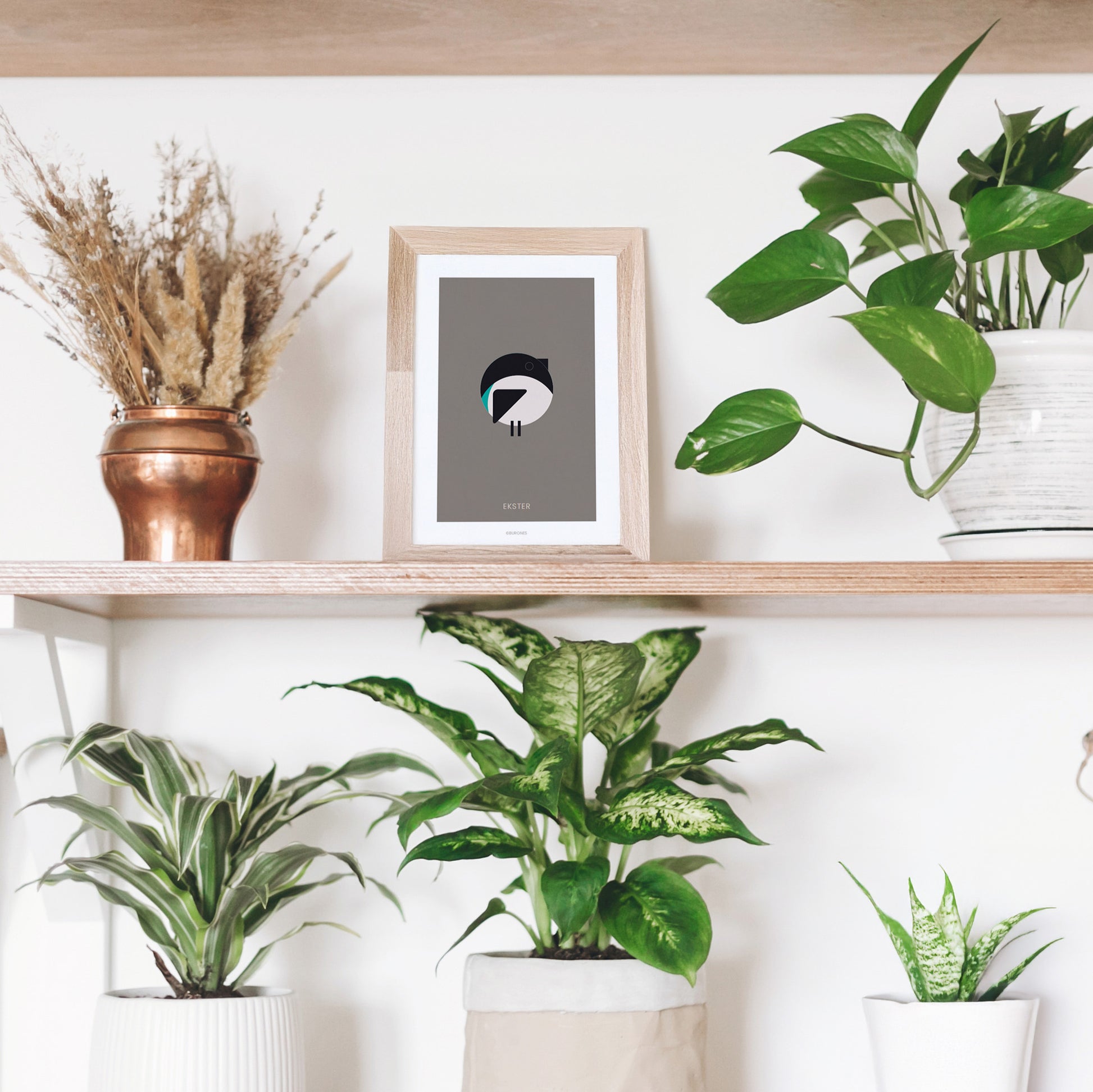 This minimalist art print depicts a graphic magpie against a warm beige background. Simple, yet oh so charming. With its round belly and inquisitive gaze, it'll effortlessly grab a spot on your wall. Perfect for anyone who appreciates subtle art with a touch of humor (and birds that know how to strike a pose).